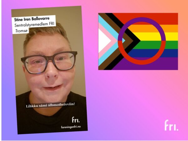 Gratulerer med samenes nasjonaldag! Stine Iren Ballovarre, sentralstyremedlem i FRI, hilser 🏳️🌈🏳️⚧️