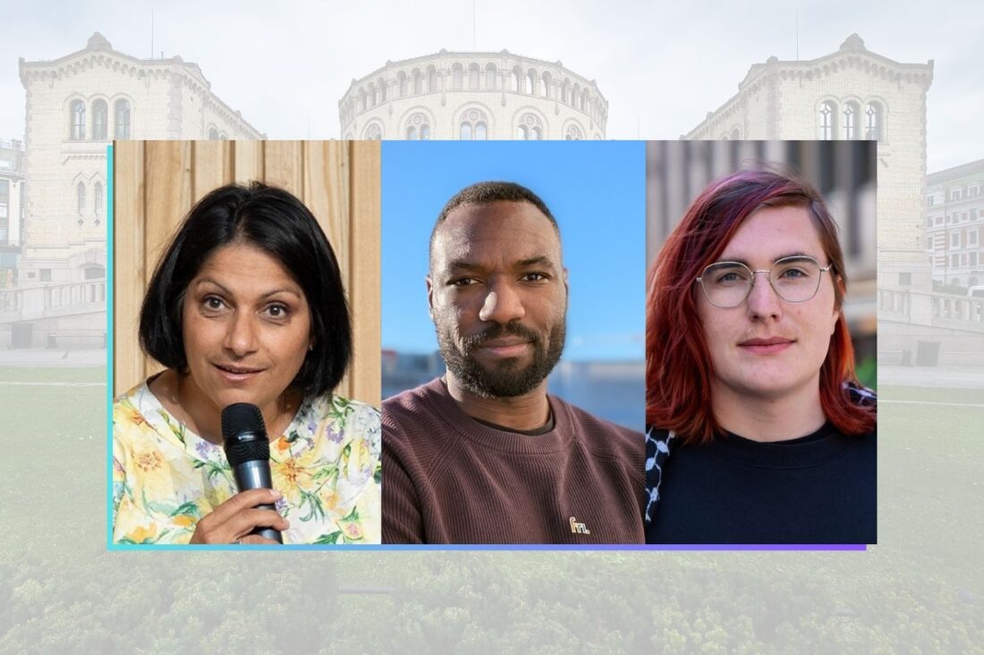 Bildet: Generalsekretær i Skeiv Verden, Hanne Farideh Lyseth, leder av FRI, Stephen Adom og leder av Skeiv Ungdom, Rebecca Zahl med klar tale til KrF og medlemmene av familie- og kulturkomiteen på Stortinget.